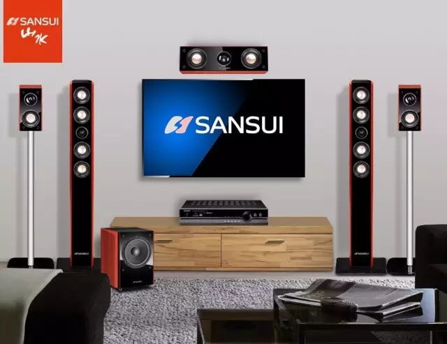 F7、F8家庭影院由二个前置、一个中置、二个无线环绕、一个8寸低音炮组成、结合SANSUI功放七件套组成,SANSUI家庭影院系统将和你一起迎来智能一体化家居影院系统时代,让您的客厅简约美丽,同时带来顶级的声音享受。5.1家庭娱乐系统.全新SANSUI F7影音系统,4K高清时代的理想音频解决方案,出众的音质加上与优雅的铝合金外观,与家居风格保持了良好的一致性,是家庭娱乐系统完美的选择。